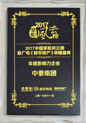 Zhongtai Group won the "2017 Guangzhou property market strength Award", given by Fangtianxia.