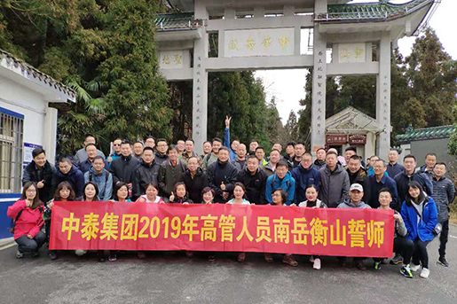 2019年3月16日-17日,中泰集团高管人员南岳衡山誓师登顶活动圆满结束。自2016年以来,中泰集团四度登顶祝融。新的一年,制定新的目标,开启新的征程。集团于此次誓师活动中组织“经营目标责任书”签订仪式,明确各公司的经营指标,全力以赴鼓干劲,众志成城创业绩,春耕秋收,砥砺前行。山雾缭绕与崎岖峭壁中,始终有战友在身旁扶持与鼓励,体现了中泰之师团结协作的精神;勇往直前登高望远,留下了中泰人奋勇争先,锐意进取的背影。稳中求进,厚积薄发,2019,中泰人满怀憧憬,携手出发!
