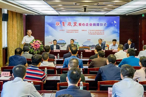 2019年11月18日上午,广东省市场监督管理局在广州举办助力脱贫攻坚献爱心捐赠仪式。中泰集团董事长陈岩先生作为捐赠企业代表出席活动,并向扶贫基金会捐赠支票。